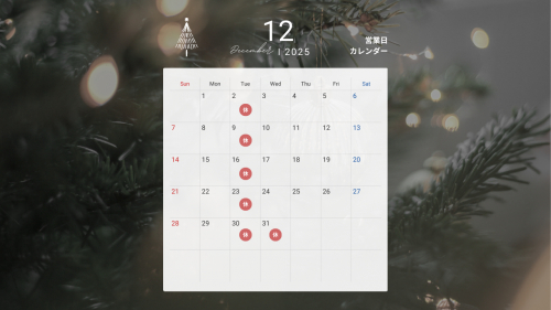 12月の営業日のお知らせ